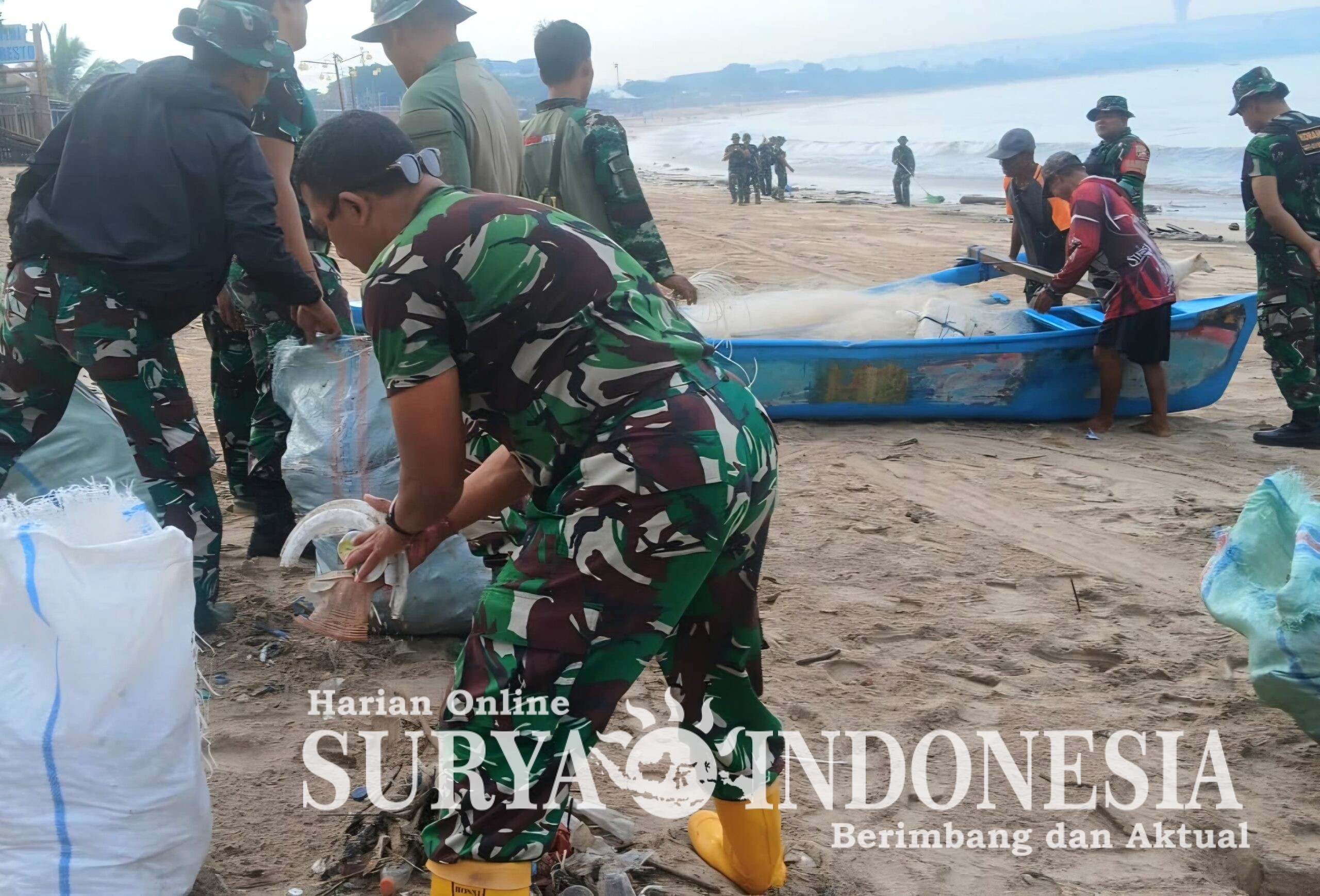 BALI – Badung,Surya Indonesia. Net – Pantai Kuta dan Pantai Kedonganan/Jimbaran di Wilayah Kabupaten Badung telah menjadi lokasi pelaksanaan Karya Bhakti Terpadu yang bertujuan untuk penanganan sampah laut pantai. Kegiatan yang dirancang untuk menjaga kebersihan dan kelestarian lingkungan pesisir ini dipimpin oleh Danramil 1611-03/Kuta, Mayor Inf Hendra Gunawan, dan melibatkan puluhan personel gabungan dari TNI serta instansi terkait. Sabtu, (20/12/2025).