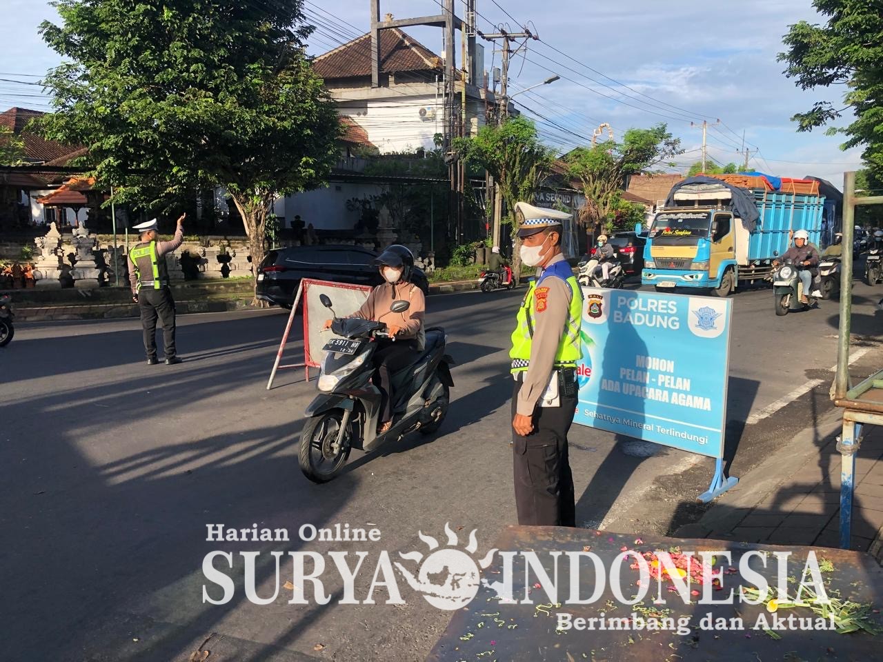 Seperti yang terpantau unit lalulintas Polsek Mengwi melakukan pengaturan arus lalulintas disimpang Cepaka, Kelurahan Kapal, Kecamatan Mengwi, Kabupaten Badung, Bali. Senin (22/12/2025) pukul 07.00 wita