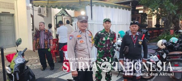 Denpasar,Surya Indonesia.net – Dalam rangka memastikan situasi kamtibmas tetap aman dan kondusif, Bhabinkamtibmas Desa Dangri (Dangin Puri) Kelod Aiptu Suwandono bersinergi bersama Babinsa dan Pecalang melaksanakan pengamanan kegiatan Ibadah Perayaan Natal 2025 di Gereja Pantekosta, wilayah Desa Dangri Kelod, Denpasar Timur, Minggu (21/12/2025).