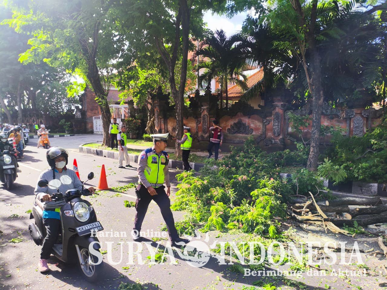 Pengamanan dilakukan oleh personel Polres Bandara Ngurah Rai dengan bersinergi bersama instansi terkait. Sejumlah petugas ditempatkan di titik-titik strategis untuk melakukan pengaturan lalu lintas dan memastikan proses penebangan pohon berjalan aman dan tertib.