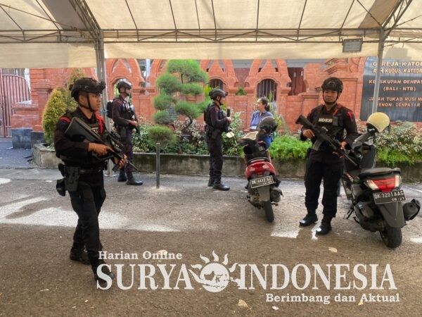 Bali, Surya Indonesia.net – Guna memastikan keamanan tempat ibadah menjelang perayaan Natal 2025, Personel Detasemen Gegana yang tergabung dalam Subsatgas Komposit Unit Wanteror Satgas Tindak Ops Lilin Agung 2025 melaksanakan kegiatan pemantauan intensif di Gereja Katedral Renon, Denpasar pada Senin (22/12). Kegiatan yang berlangsung mulai pukul 10.35 WITA ini merupakan bagian dari upaya deteksi dini dan kesiapsiagaan tinggi terhadap potensi gangguan keamanan di wilayah hukum Polda Bali.