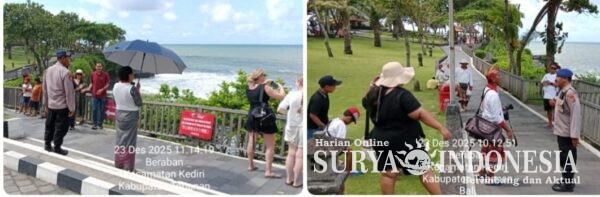 Tabanan, Surya Indonesia.net – Sat Polairud Polres Tabanan melaksanakan kegiatan Patroli Pesisir dan Sambang Pesisir di kawasan objek wisata DTW Pantai Tanah Lot, Selasa (23/12/2025) siang. Kegiatan ini dilaksanakan sebagai upaya menjaga situasi kamtibmas tetap kondusif serta memberikan rasa aman dan nyaman bagi wisatawan lokal maupun mancanegara yang berkunjung ke kawasan wisata pesisir tersebut.