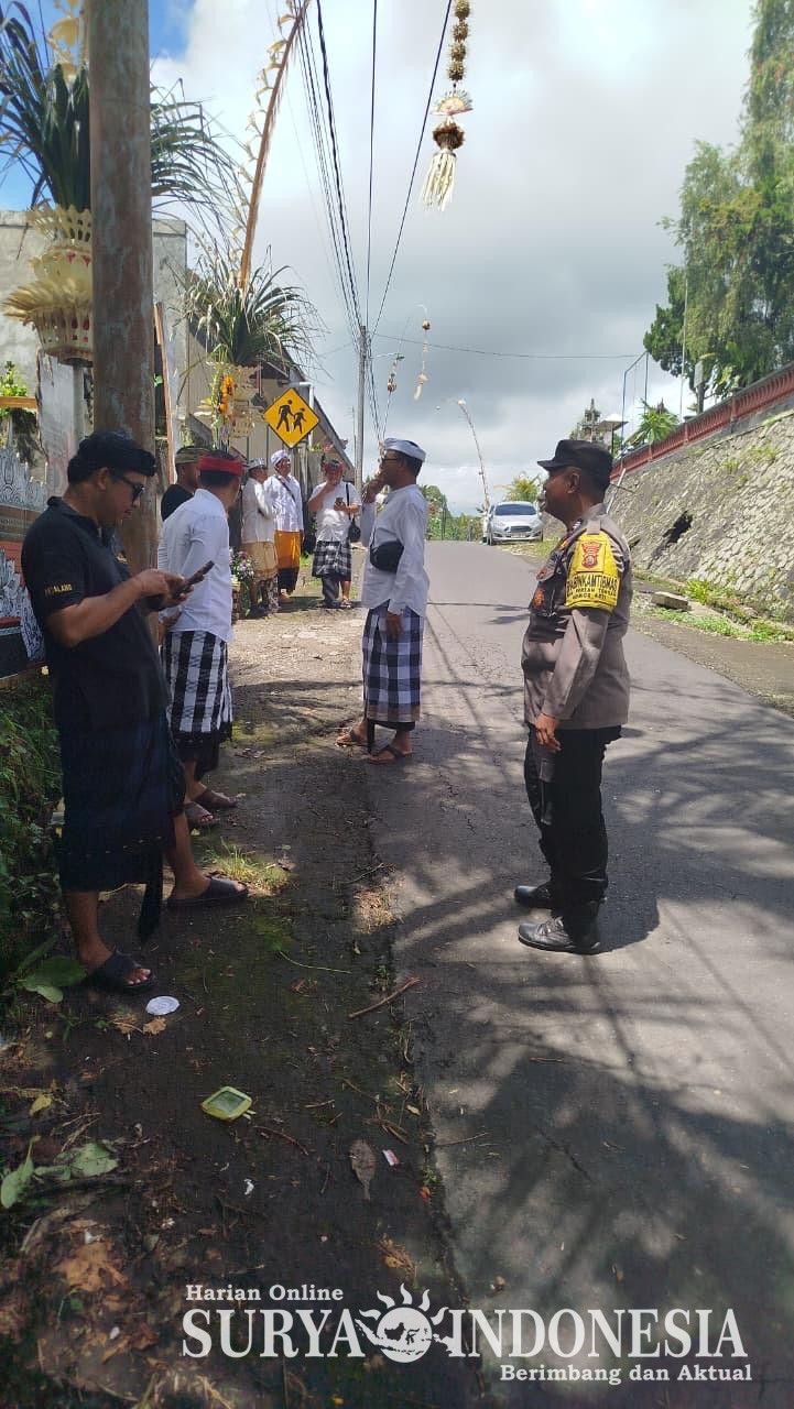 Bhabinkamtibmas Desa Perean Tengah Amankan Uleman Upacara Ngenteg Linggih di Desa Adat Berteh