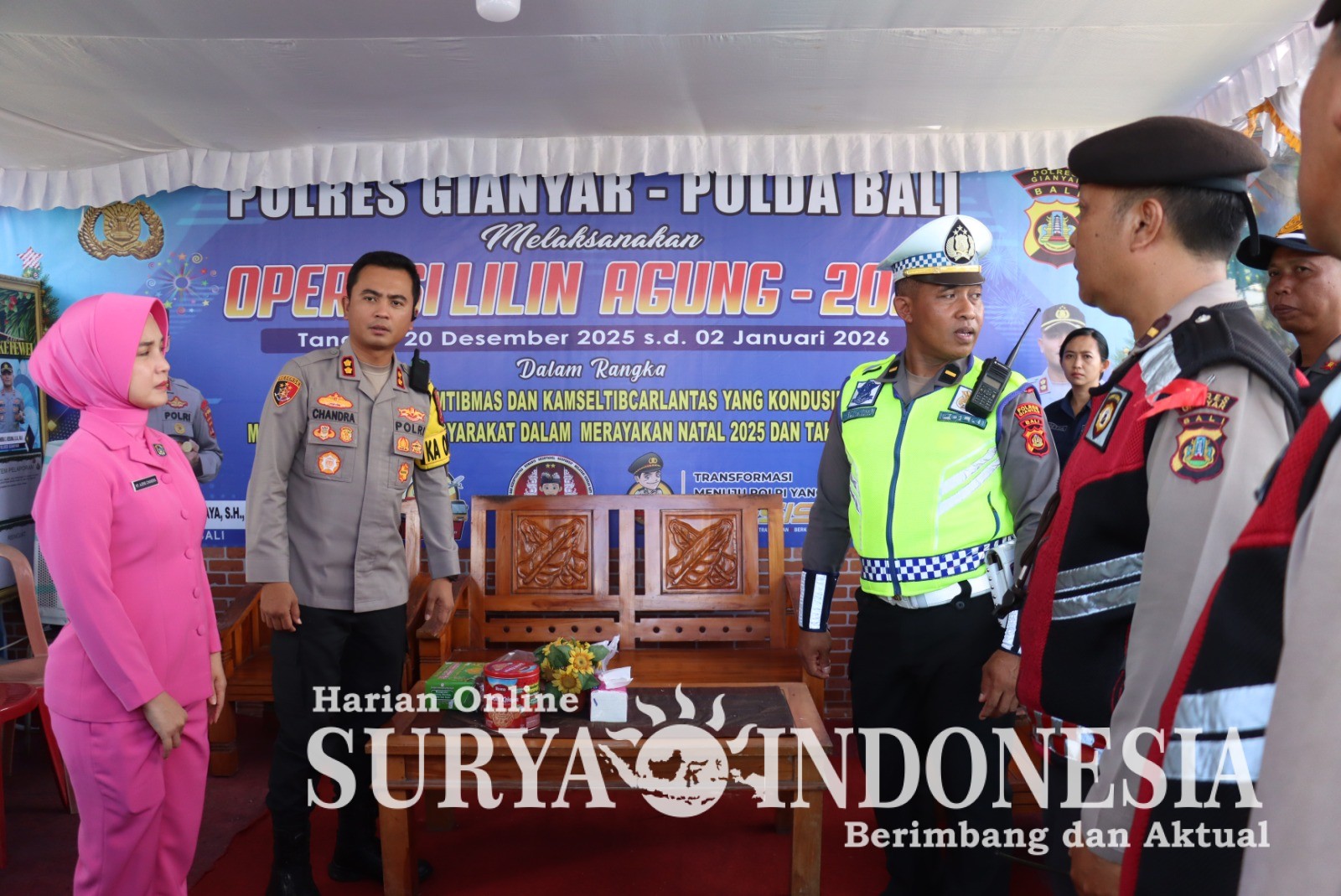 GIANYAR, Surya Indonesia.net – Dalam rangka memastikan pelaksanaan Operasi Lilin Agung 2025 berjalan aman dan lancar, Kapolres Gianyar AKBP Chandra C. Kesuma, S.I.K., M.H. didampingi Ibu Ketua Bhayangkari Cabang Gianyar melaksanakan kunjungan ke sejumlah gereja serta pos pengamanan dan pelayanan di wilayah hukum Polres Gianyar, Selasa (23/12/2025).