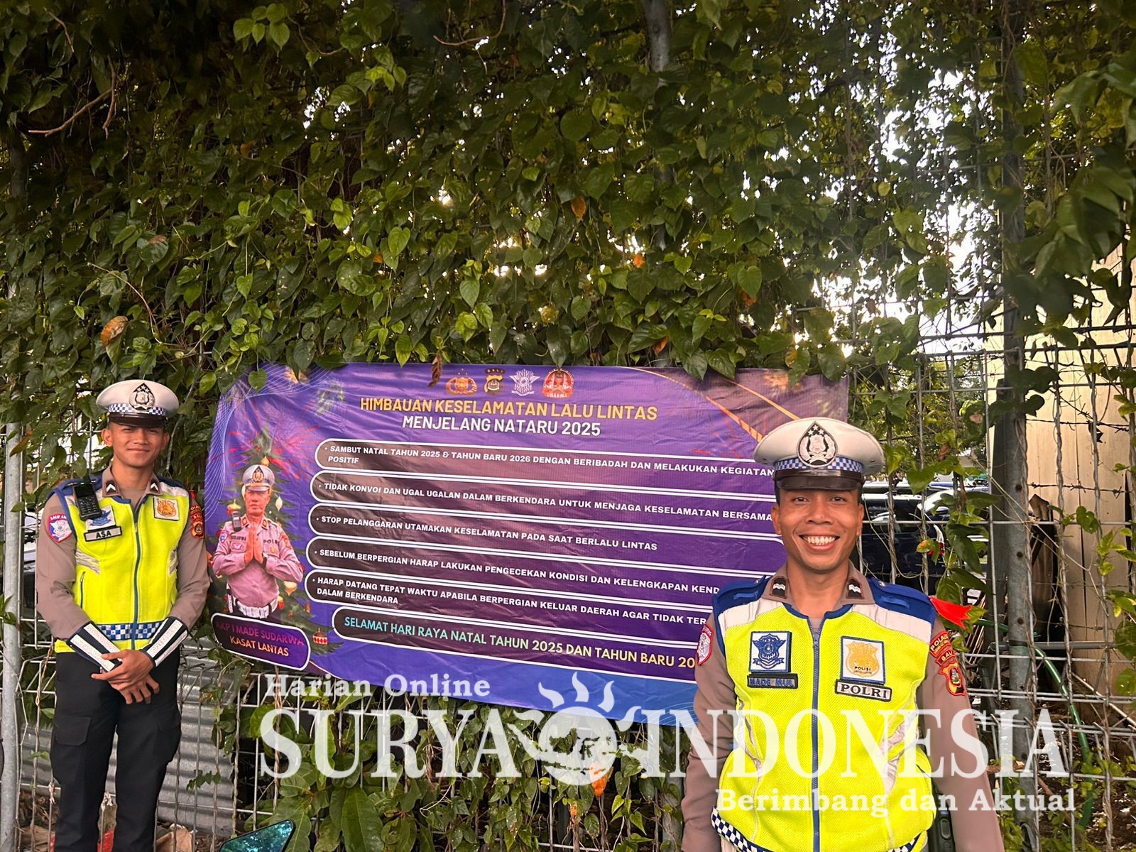 Badung, Surya Indonesia.net — Personel Satuan Lalu Lintas (Satlantas) Polres Kawasan Bandara I Gusti Ngurah Rai melaksanakan kegiatan pemasangan spanduk serta pembagian brosur himbauan di sejumlah titik strategis kawasan bandara, Senin (23/12/2025).