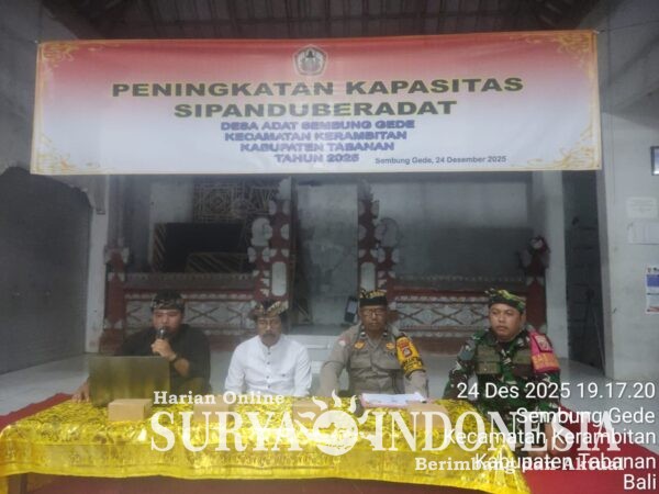 Tabanan, Surya Indonesia.net – Polsek Kerambitan, Rabu 24 Desember 2025; Bhabinkamtibmas Desa Sembung Gede Aipda I Gst Komang Karyawan laksanakan giat Peningkatan Kapasitas SDM Forum Sipandu Beradat dan Bakamda di Balai Serbaguna Desa Sembung Gede-Kerambitan.