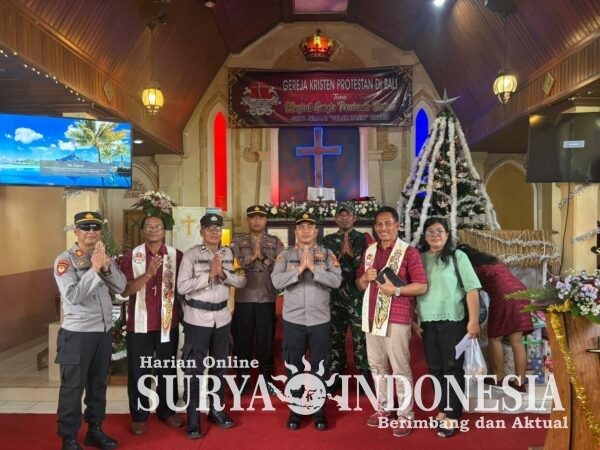 Tabanan, Surya Indonesia.net – Polsek Kerambitan, Kamis 25 Desember 2025 ; Kaposlek Kerambitan AKP Putu Budiawan bersama 6 Orang Personel dan sinergi dengan 1 Orang TNI serta 2 Orang Pemuda Gereja laksanakan pengamanan Missa Natal.
