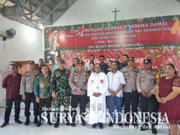 Tabanan, Surya Indonesia.net – Polsek Kerambitan, Kamis 25 Desember 2025 ; Kapolsek Kerambitan AKP PUTU BUDIAWAN bersama 6 Orang Personel dan sinergi dengan 1 Orang TNI serta 2 Orang Pemuda Gereja laksanakan pengamanan Missa Natal.