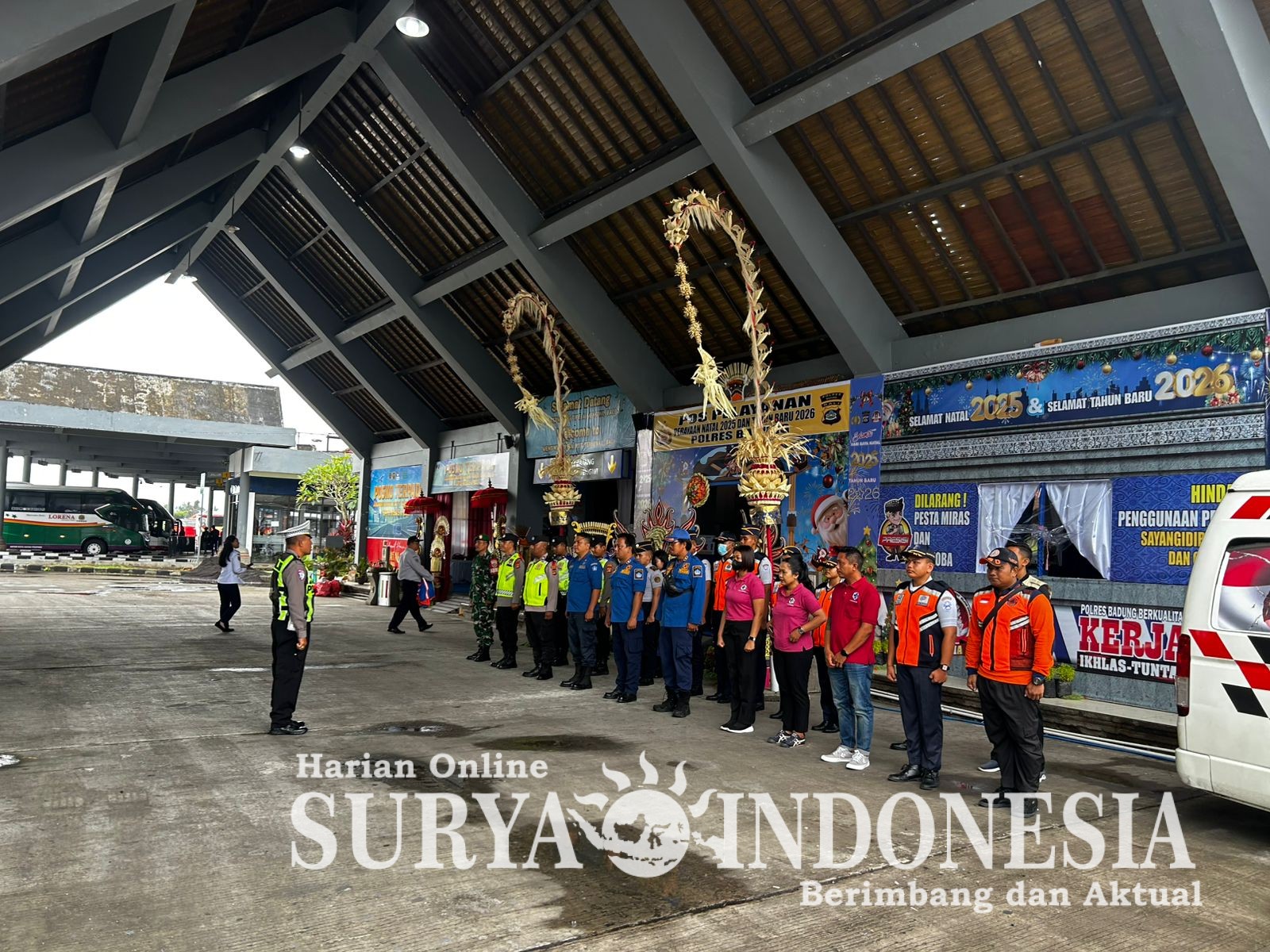 BALI – Badung,Surya Indonesia. Net – Terminal Tipe A Mengwi, Kabupaten Badung, Bali, menjadi lokasi penyelenggaraan pengamanan dalam rangka Pengamanan Natal dan Tahun Baru (Nataru) Tahun 2025-2026. Kegiatan yang bertujuan menyambut kedua perayaan besar tersebut telah berlangsung secara teratur pada Selasa, 23 Desember 2025, menandai awal upaya bersama menjaga keamanan dan ketertiban di wilayah terkait. Sabtu, (27/12/2025).