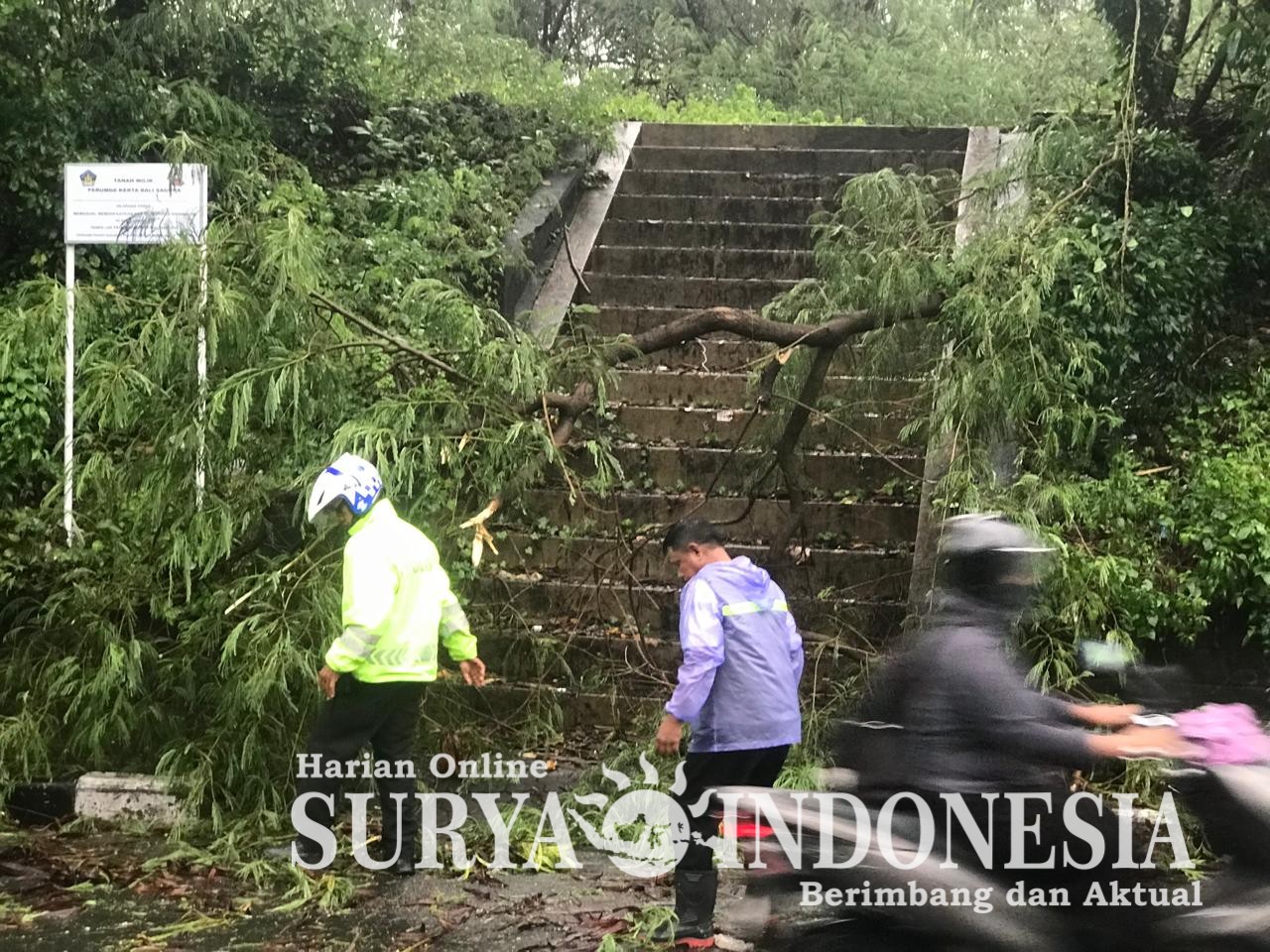 Denpasar, Surya Indonesia.net – Personel Lalu Lintas Polsek Denpasar Timur (Dentim) yang tergabung dalam Operasi Lilin Agung 2025 dan bertugas di Pos Pengamanan (Pospam) Kesiman Kertalangu melaksanakan pengaturan arus lalu lintas akibat pohon tumbang di Jalan WR. Supratman, tepatnya di depan SD 5 Saraswati, Denpasar Timur, pada Sabtu (27/12/2025) Sore.