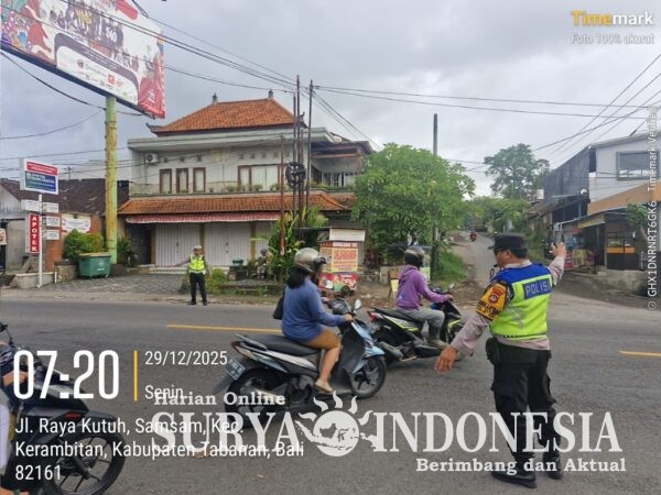 Tabanan, Surya Indonesia.net – Polsek Kerambitan, Senin 29 Desember 2025; Anggota Polsek Kerambitan laksanakan tugas Pengaturan Lalu Lintas di Jalur Denpasar – Gilimanuk yang termasuk Daerah Hukum Polsek Kerambitan.