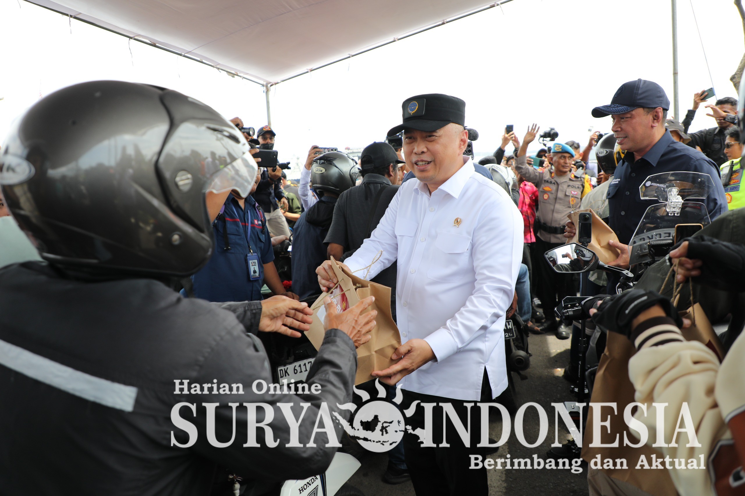 Jembrana, Surya Indonesia.net – Di sela-sela kegiatan peninjauan kesiapan angkutan Natal 2025 dan Tahun Baru 2026 (Nataru), Kapolda Bali Irjen Pol. Daniel Adityajaya, S.H., S.I.K., M.Si. bersama Menteri Perhubungan RI Dudy Purwagandhi dan Kakorlantas Polri, Irjen Pol. Agus Suryonugroho melaksanakan pembagian bingkisan kepada masyarakat yang akan menyeberang menuju Pulau Jawa melalui Pelabuhan Gilimanuk, Kabupaten Jembrana, Senin (29/12/2025).