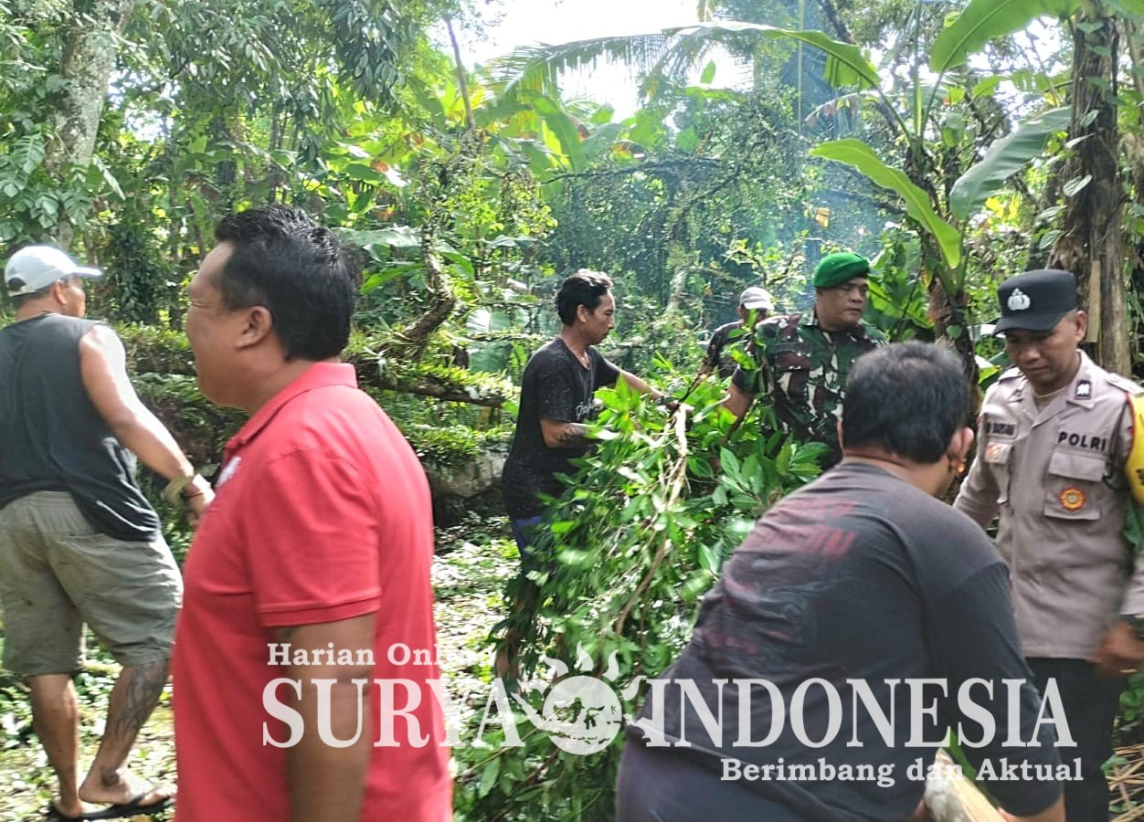 BALI – Badung, Surya Indonesia.net – Kejadian pohon tumbang kembali terjadi, kali ini di Pura Dalem Alit Banjar Gunung, Desa Taman, Kecamatan Abiansemal, Kabupaten Badung. Kejadian ini disebabkan oleh curah hujan yang cukup tinggi yang disertai angin kencang baru-baru ini. Setelah menerima laporan dari warga tentang kejadian tersebut, Babinsa Desa Taman, Serka I Nyoman Subrata, dengan sigap bersama warga segera turun langsung membantu mengatasi masalah menggunakan alat pemotong pohon serta mengangkut ranting yang patah. Pada Minggu, (28/12/2025).