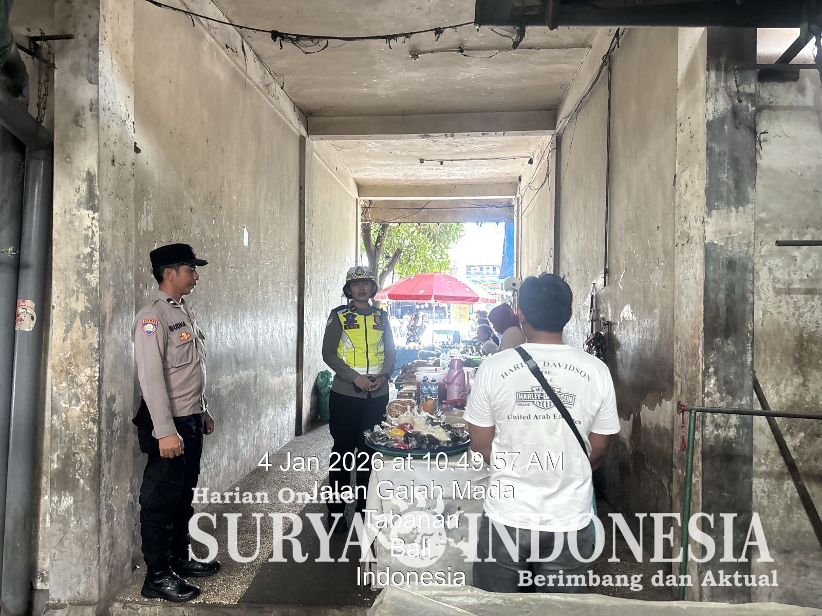 Tabanan, Surya Indonesia.net – Polsek Tabanan Minggu 4 Januari 2026 – Dalam rangka menjaga stabilitas keamanan dan ketertiban masyarakat (Kamtibmas) di awal tahun baru 2026, jajaran kepolisian menggelar kegiatan patroli dialogis di kawasan Pasar Tabanan, pada hari Minggu (4/1/2026).