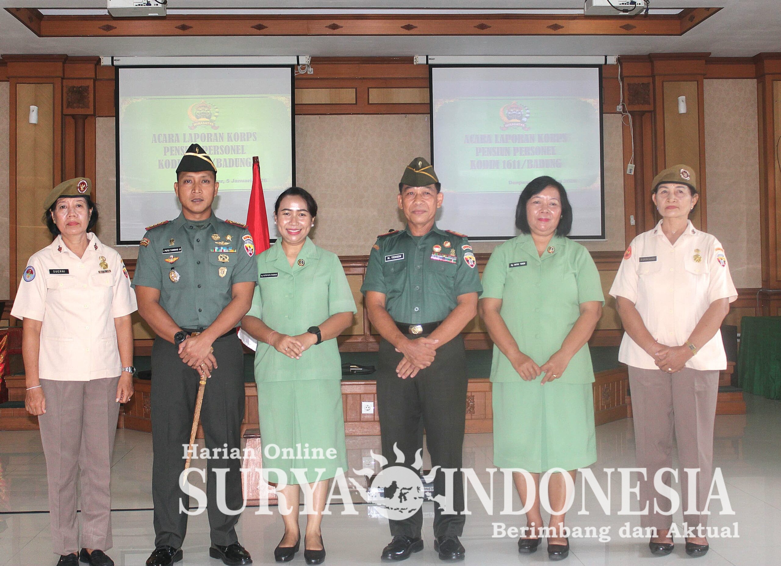 Denpasar, Surya Indonesia.net – Pada hari Senin tanggal 5 Januari 2026 pukul 09.00 WITA, telah dilaksanakan kegiatan Laporan Korps Pensiun Personel Kodim 1611/Badung di Aula Utama Makodim 1611/Badung, yang berlokasi di Jl. Sugianyar No.6 Desa Dauh Puri Kangin, Kecamatan Denpasar Barat, Kota Denpasar. Kegiatan ini dipimpin langsung oleh Dandim 1611/Badung Kolonel Inf I Putu Tangkas Wiratawan, S.I.P., dan diikuti oleh sekitar 50 personel Kodim 1611/Badung.