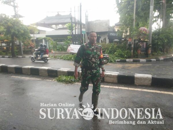 Babinsa Kelurahan Dauh Puri Dengan Sigap Tangani Pohon Tumbang di Jalan Yos Sudarso Tanpa Korban