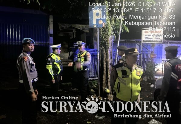 Tabanan, Surya Indonesia.net – Dalam rangka mengantisipasi terjadinya kejahatan 3C (Curat, Curas, dan Curanmor), Polres Tabanan melaksanakan kegiatan Blue Light Patrol pada Sabtu dini hari, 10 Januari 2026, mulai pukul 00.30 Wita hingga 01.45 Wita. Kegiatan patroli ini dilaksanakan di wilayah hukum Polres Tabanan oleh Pawas bersama gabungan piket fungsi.