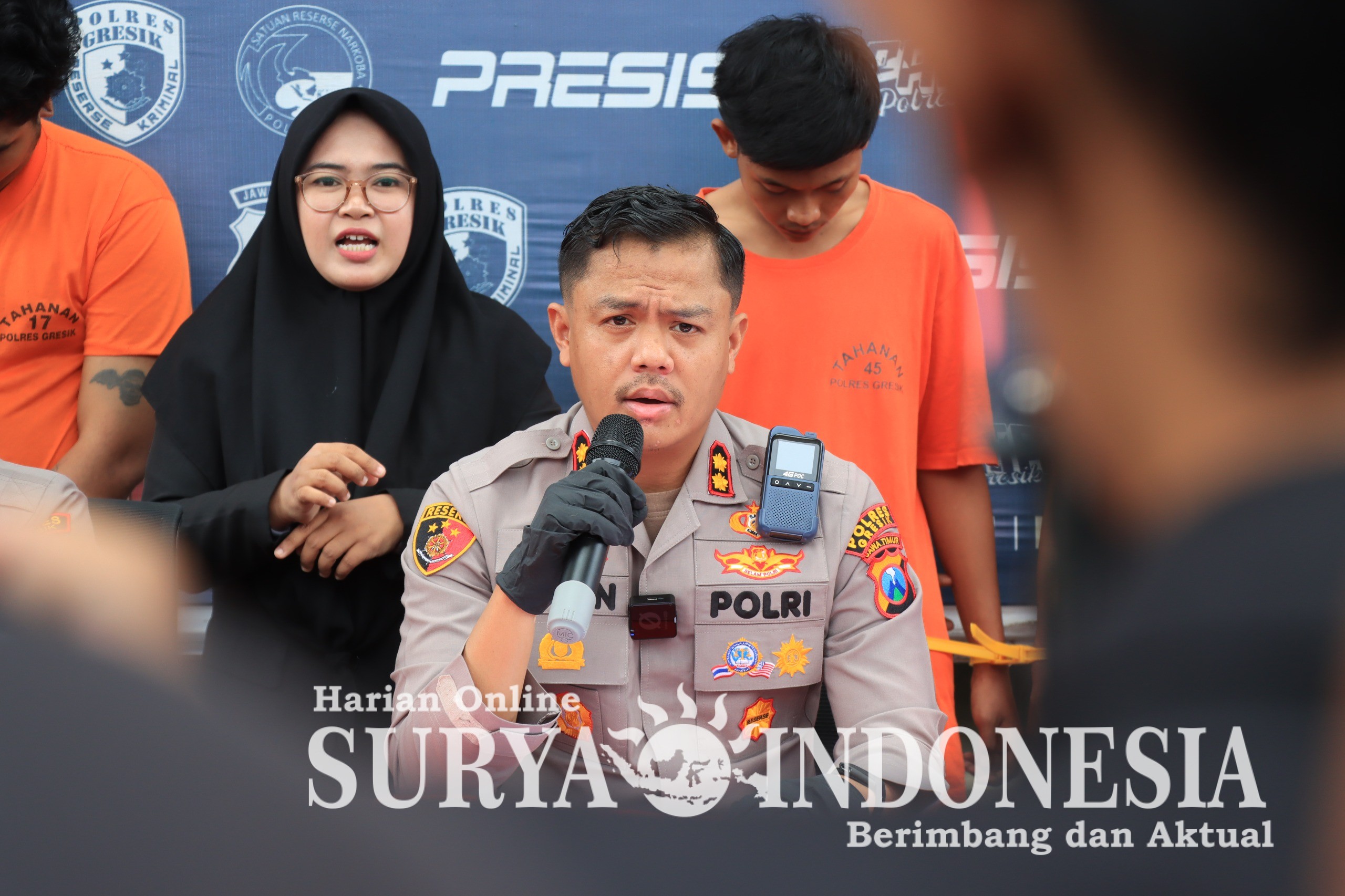 Kapolres Gresik AKBP Rovan Richard Mahenu dalam press conference yang digelar di halaman Mapolres Gresik menyampaikan apresiasi setinggi-tingginya kepada masyarakat atas doa, dukungan, serta kerja sama yang diberikan sehingga para pelaku dapat diamankan dalam waktu relatif singkat.