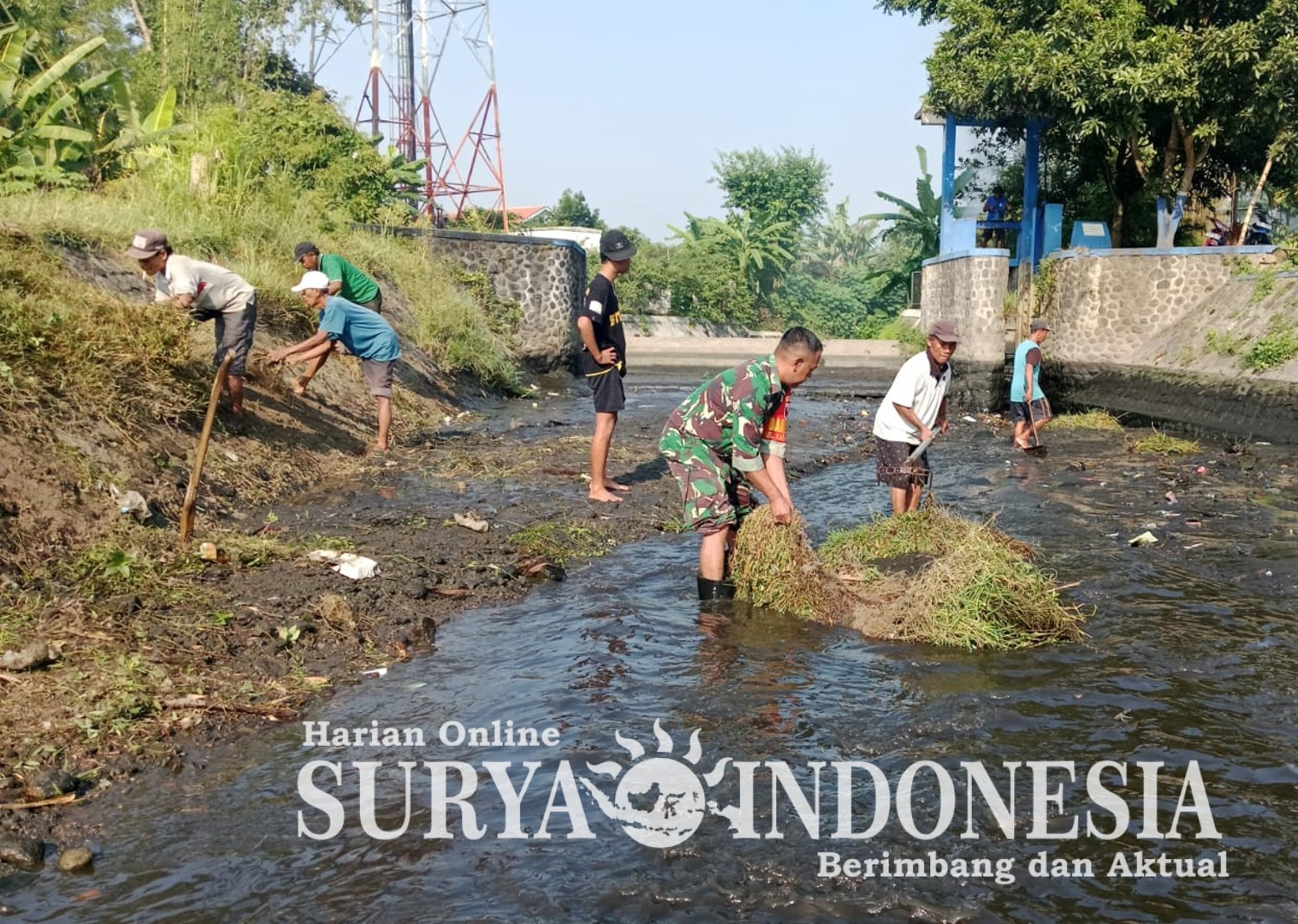 Suryaindonesia.net || Blitar – Babinsa Kelurahan Karangsari Koramil 0808/01 Sukorejo Serda Yohanes Kefi bersama Kelompok Tani (Poktan) Margo Mulyo 1 melaksanakan kegiatan pembersihan sumber air untuk memperlancar aliran irigasi. Kegiatan tersebut berlangsung di jalan Salak RT. 03 RW. 04 Kelurahan Karangsari Kecamatan Sukorejo Kota Blitar, Selasa (13/1/2026).