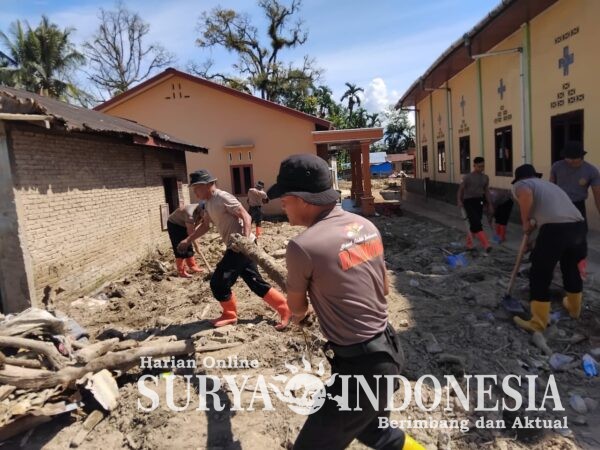 Tapanuli Selatan, Surya Indonesia.net — Personel Batalyon C Satuan Brimob Polda Sumatera Utara terus melanjutkan upaya pemulihan pascabencana banjir bandang di Kecamatan Batang Toru, Kabupaten Tapanuli Selatan. Pada Kamis pagi (15/1/2026), personel Brimob kembali diterjunkan untuk melakukan pembersihan rumah warga yang terdampak material pasir, kayu, dan batu, sekaligus pembangunan fasilitas MCK di rumah ibadah.