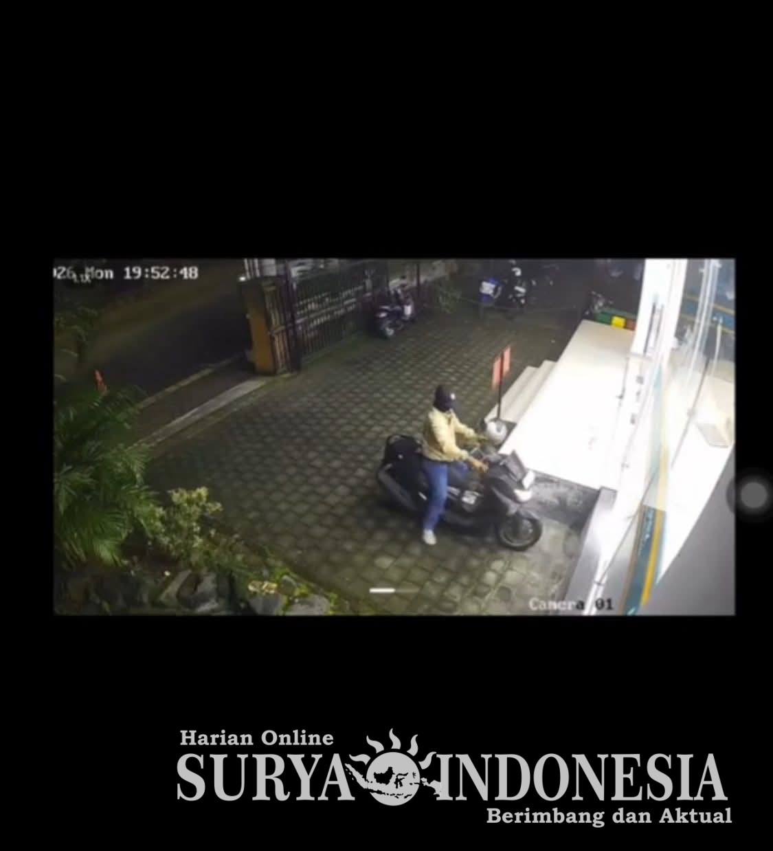 Dalam rekaman CCTV, pelaku terlihat duduk di samping sepeda motor sambil mengamati kondisi sekitar untuk memastikan situasi aman. Setelah dirasa sepi, pelaku kemudian melancarkan aksinya dan membawa kabur sepeda motor korban.