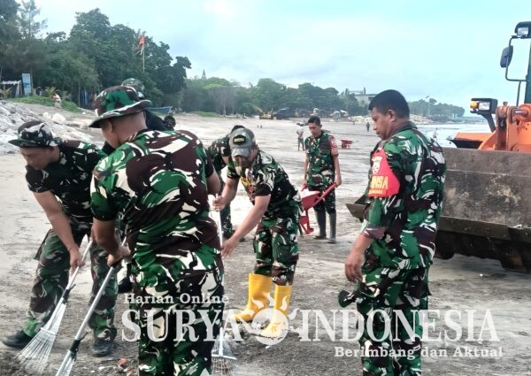 BALI – Badung,Surya Indonesia. Net – Dalam rangka menjaga kebersihan dan keasrian kawasan pantai sekaligus menangani permasalahan sampah laut, digelar Karya Bhakti Terpadu Pembersihan Pantai yang dipimpin langsung oleh Danramil 1611-03/Kuta, Mayor Inf Hendra Gunawan, bertempat di Pantai Kuta dan Pantai Kedonganan (Jimbaran), Kabupaten Badung. Kegiatan yang bertujuan meningkatkan kondisi lingkungan pantai ini dilaksanakan pada hari ini dengan pelibatan personel TNI dan DLHK. Sabtu, (17/01/2026).