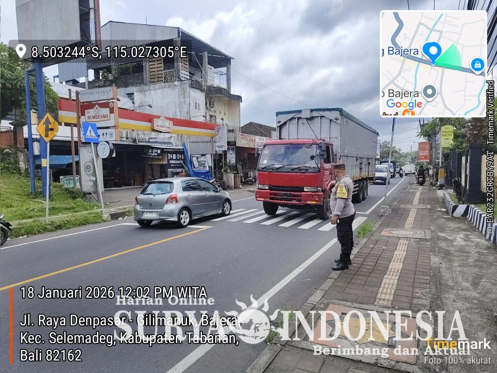 Tabanan, Surya Indonesia.net – Polsek Selemadeg, Minggu, 18 Januari 2026, Siang. Dalam rangka mendukung Program Presisi Kapolri guna menciptakan situasi aman kondusif. Polsek Selemadeg menggelar kegiatan Strong Point di Simpang Pasar Bajera yang merupakan pusat keramaian penyebrang jalan.