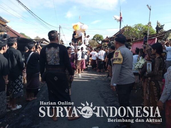 Kegiatan yang dimulai sejak pukul 08.00 WITA ini melibatkan pengarakan bade menuju setra (pemakaman) setempat. Mengingat kegiatan tersebut menggunakan akses jalan utama desa, kehadiran personil kepolisian menjadi krusial untuk mengatur arus lalu lintas dan mencegah kemacetan.