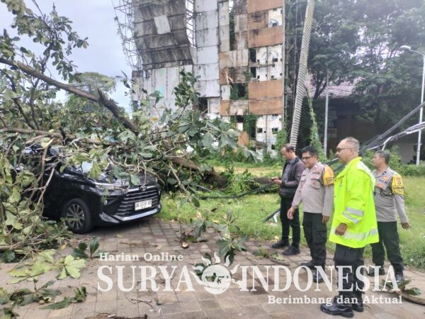 Denpasar,Surya Indonesia. Net – Personel Polsek Denpasar Utara melakukan atensi terhadap peristiwa pohon tumbang jenis ketapang yang menimpa satu unit mobil di area parkiran Lapangan GOR Ngurah Rai Denpasar, Selasa (20/1/2025). Kejadian tersebut berlangsung di Jalan Melati, Desa Dangin Puri Kangin, Kecamatan Denpasar Utara.