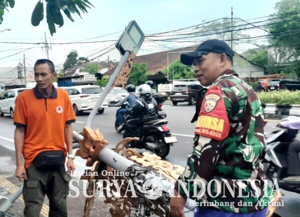BALI – Denpasar,Surya Indonesia. Net – Sebuah tiang listrik roboh di ruas jalan Baypas Ngurah Rai, dekat Gerbang Praja Rakasa, Desa Pemogan, Kecamatan Denpasar Selatan, Kota Denpasar. Kejadian ini terjadi akibat kondisi cuaca buruk berupa hujan yang disertai angin kencang, dan segera mendapatkan tanggapan cepat dari pihak berwenang. Selasa, (20/01/2026).