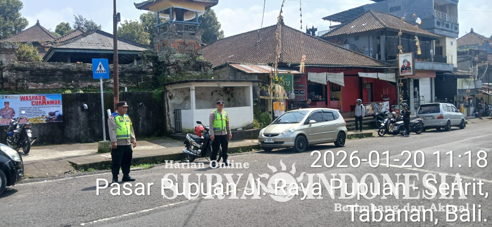 Tabanan, Surya Indonesia.net – Polsek Pupuan, Selasa 20 Januari 2026 pukul 07.30 s/d 09.00 Wita, sebagai wujud nyata kehadiran Polri dalam memberikan pelayanan kepada masyarakat, personel Polsek Pupuan melaksanakan kegiatan Strong Point berupa pengaturan arus lalu lintas dan pengamanan kegiatan masyarakat di wilayah hukum Polsek Pupuan.