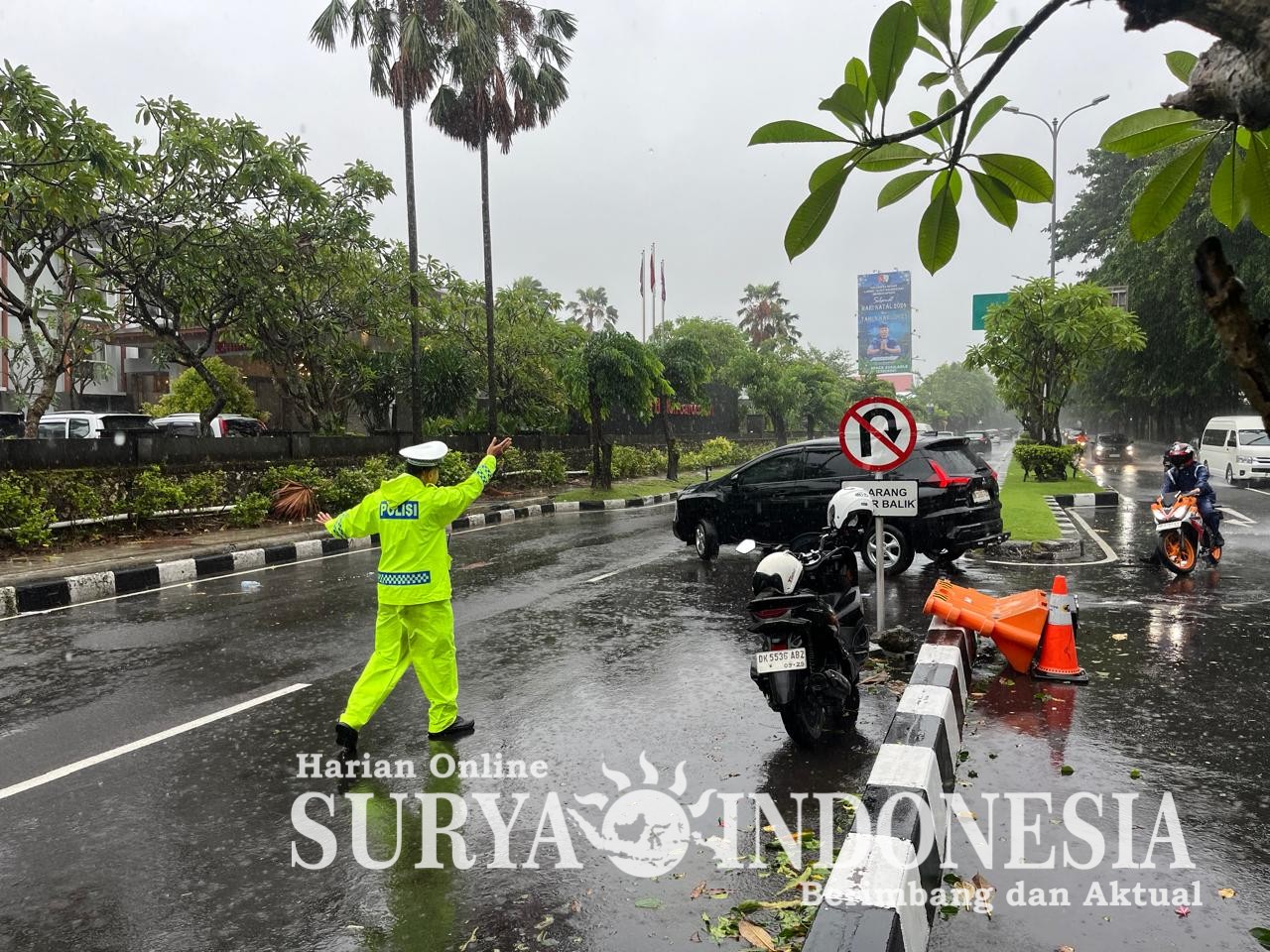 Selain melakukan pengaturan lalu lintas, petugas juga memberikan imbauan kepada para pengendara agar selalu berhati-hati, menyalakan lampu kendaraan, serta menjaga jarak aman guna mengantisipasi jalan licin akibat hujan.