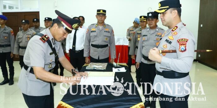 Prosesi sertijab ditandai dengan pengambilan sumpah jabatan serta penandatanganan berita acara oleh pejabat baru di hadapan Kapolres Gresik.