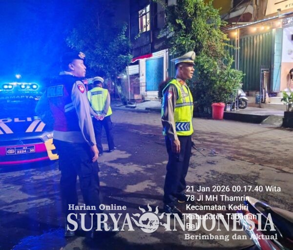 Rabu, 21-1-2026 pukul 00.20 s/d 02.00 wita personil Polsek Kediri yang dipimpin oleh Perwira Pengawas (Pawas) AKP I Ketut Bagiana, S.H. bersama piket fungsi melaksanakan BLP di Kawasan Pemukiman, SPBU Abiantuwung, ATM, Perbankan, Pemukiman Warga dan Supermarket serta obyek vital terutama yang ada pada jalur utama jalan A.Yani dan jln. Ir. Soekarno termasuk juga jalur selatan tepatnya by pass Nyanyi dalam menciptakan situasi Kamtibmas yang aman dan Kondusif.