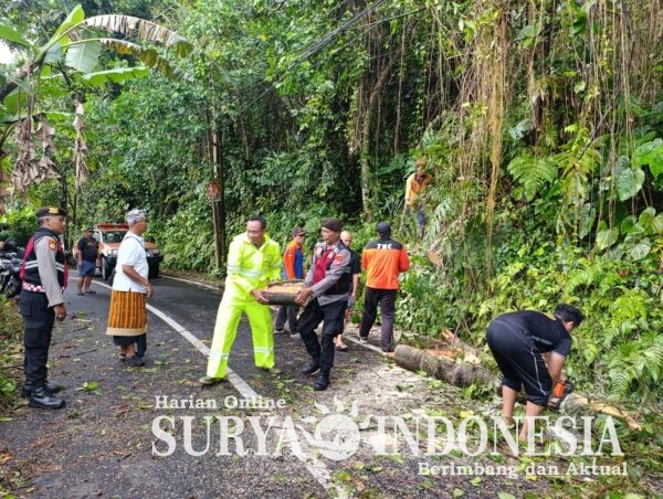 UBUD, Surya Indonesia.net – Peristiwa bencana alam berupa pohon tumbang terjadi di Jalan Raya Jungjungan, Lingkungan Jungjungan, Kelurahan/Kecamatan Ubud, Kabupaten Gianyar, pada Selasa (20/1/2026) sekitar pukul 16.00 WITA. Pohon jenis Bentenu dengan diameter kurang lebih 30 sentimeter tumbang dan menutupi seluruh badan jalan, sehingga sempat menghambat arus lalu lintas.