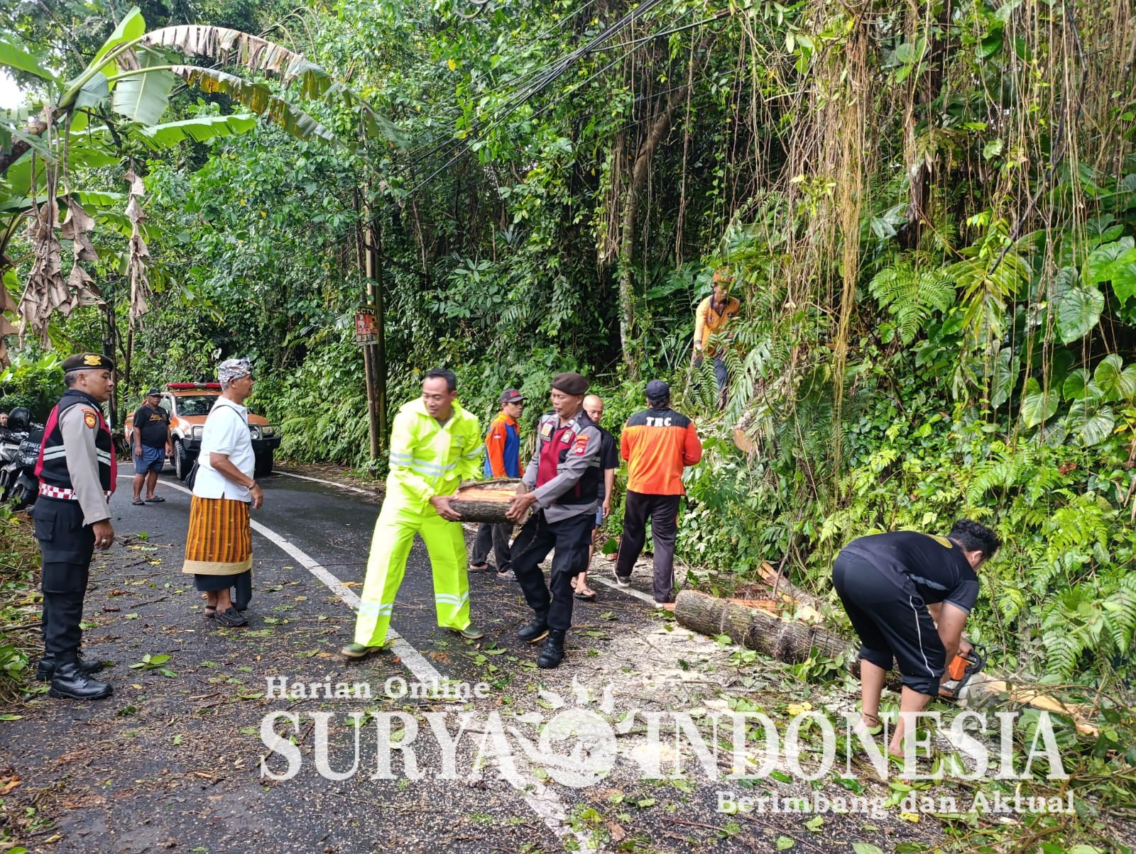 Sekitar pukul 17.10 WITA, seluruh material pohon tumbang berhasil dibersihkan dan arus lalu lintas di Jalan Raya Jungjungan kembali normal.