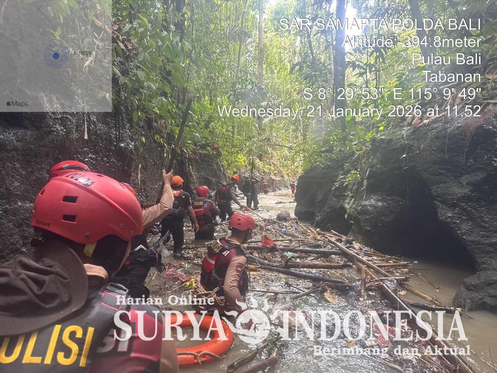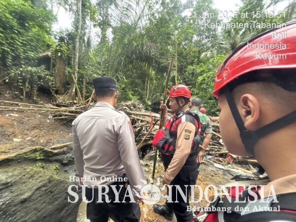 Tabanan, Surya Indonesia.net – Unit SAR Ditsamapta Polda Bali bergerak cepat menerjang medan berat di Banjar Ancak, Desa Kuwum, guna melaksanakan operasi pencarian ibu dan anak yang hilang terseret bah pada Rabu (21/1) dini hari.
