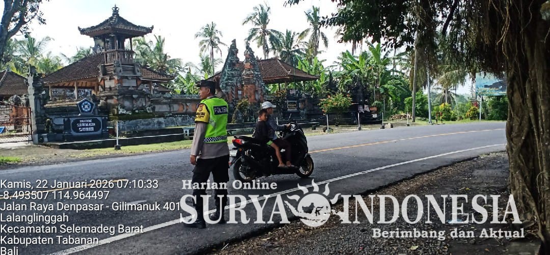 Suraberata, Kamis 22/1/2026 Pukul 07.00 s/d 08.00 wita Guna menjaga keamanan dan kelancaran lalu lintas, keramaian aktivitas masyarakat di pagi hari, Personel Polsek Selbar AIPTU I Ketut Agus Suryadi Laksanakan Strong Point di Depan Pasar Suraberata antisipasi Gangguan Kamtibmas di pagi hari demi keselamatan dan kelancaran pengguna jalan Raya di Kecamatan Selemadeg barat, Kabupaten Tabanan.