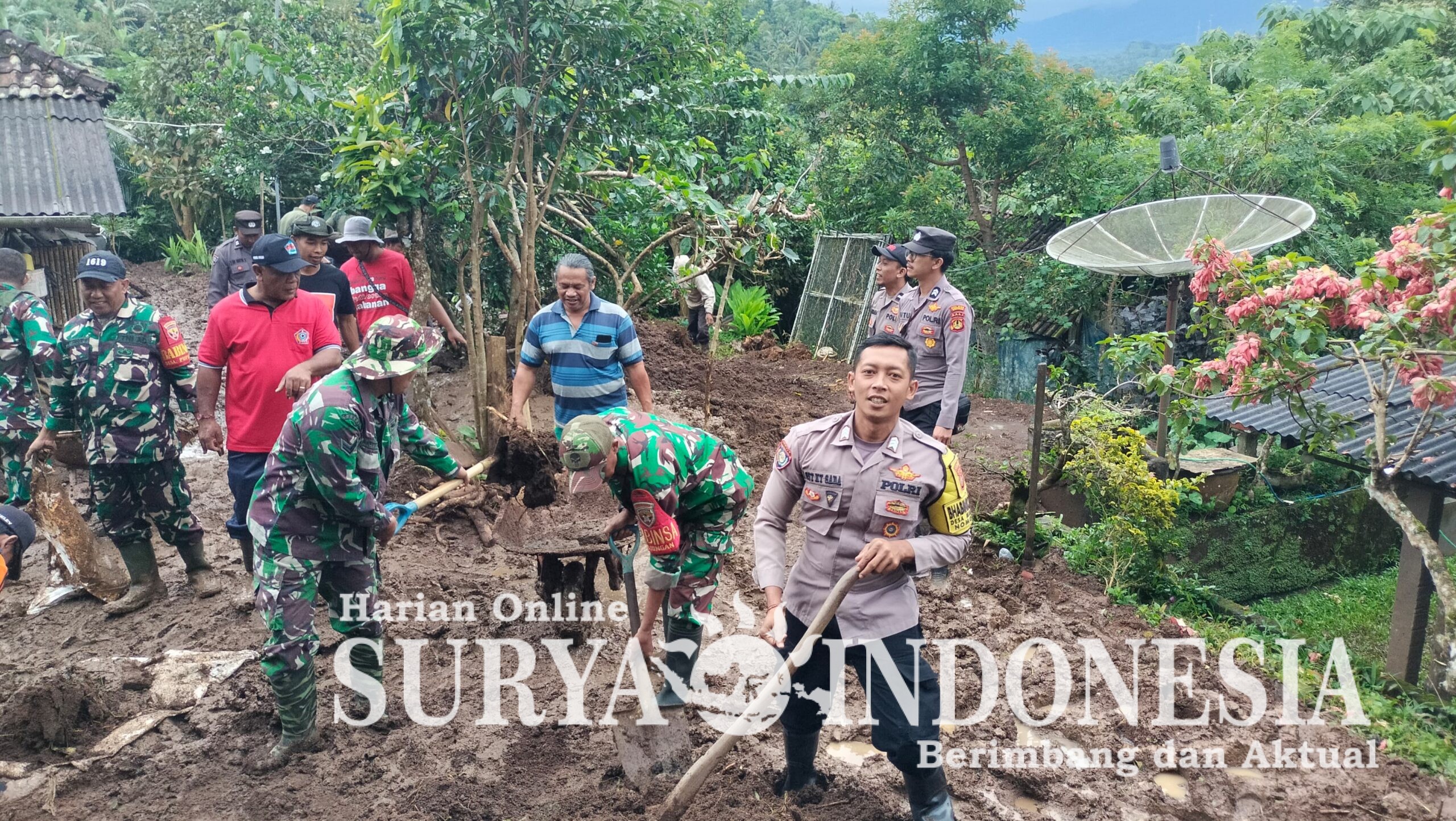 Tabanan, Surya Indonesia.net – Polsek Pupuan, Kamis 22 Januari 2026 pukul 08.30 s/d 10.30 Wita, sebagai wujud nyata kehadiran Polri di tengah masyarakat serta bentuk kepedulian terhadap warga yang tertimpa musibah, personel Polsek Pupuan melalui peran aktif Bhabinkamtibmas bersama unsur terkait, dan masyarakat melaksanakan kegiatan gotong royong pembersihan sisa material longsor yang menimpa rumah warga.