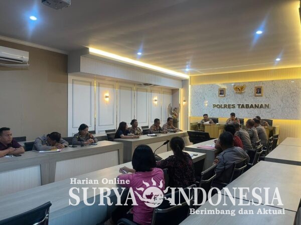 Tabanan, Surya Indonesia.net – Polres Tabanan melaksanakan Analisa dan Evaluasi (Anev) Operasional Program Makan Bergizi Gratis (MBG) Polri, pada Jumat, 23 Januari 2026, pukul 13.00 s/d 14.40 Wita. Kegiatan tersebut berlangsung di Ruang Vicon Polres Tabanan dan dipimpin langsung oleh Kapolres Tabanan AKBP I Putu Bayu Pati, S.I.K., M.H., sebagai bentuk komitmen Polres Tabanan dalam memastikan pelaksanaan program MBG berjalan optimal dan tepat sasaran.