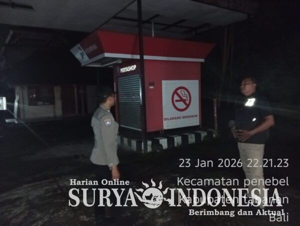 Tabanan,Surya Indonesia. Net – Polsek Penebel Sabtu 24 Januari 2026 pkl 22.00 wita sampai dengan 23.00 wita Guna menjaga situasi Kamtibmas di Wilkum Polsek Penebel agar tetap aman dan kondusip terutama di malam hari, Personil Polsek Penebel setiap malam menggelar Patroli Blue Light, dengan sasaran Perbankan/Atm, SPBU, Pasar senggol, pemukiman penduduk dan tempat – tempat rawan C3 ( Curat, Curas dan Curanmor )