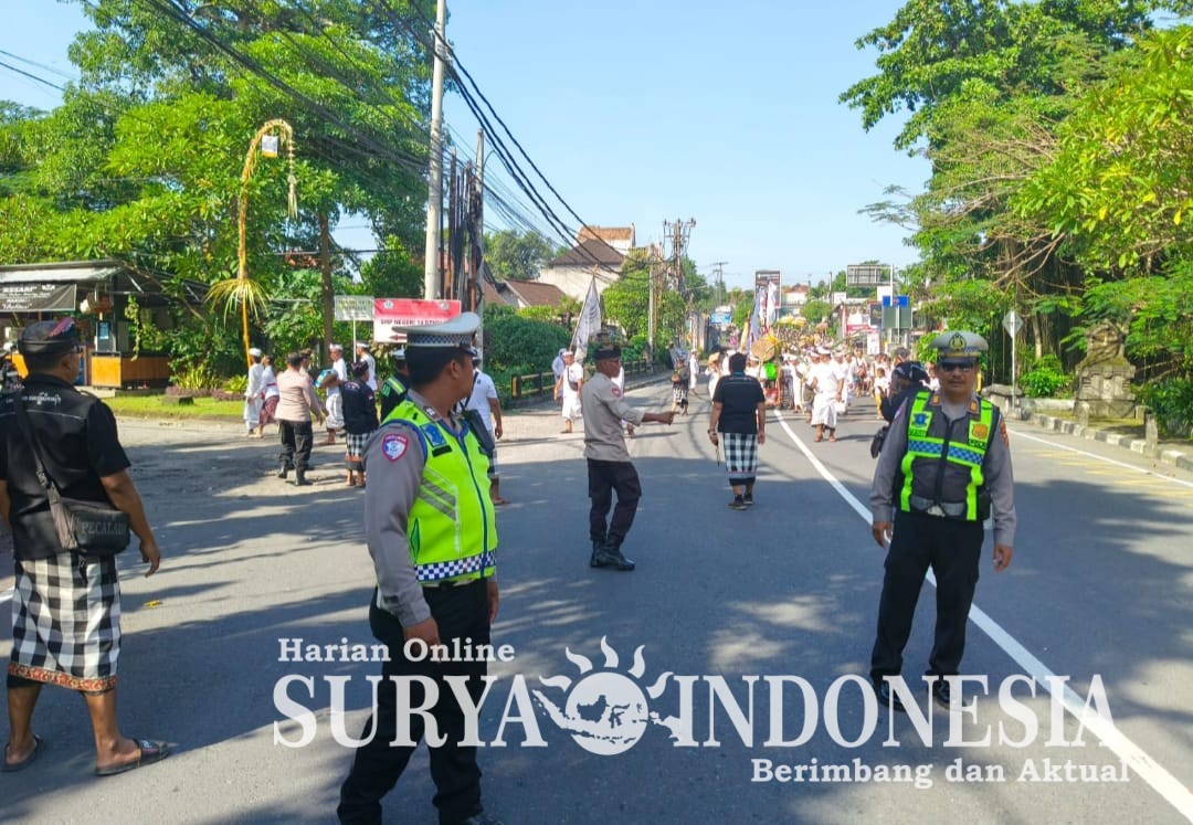 Personil Polsek Dentim bersama Dishub Kota Denpasar, serta Pecalang Arya Kanuruhan dan Pecalang Desa Adat Kesiman melaksanakan pengamanan iring-iringan Ida Ratu Pura Kawitan Pangeran Tangkas Kori Agung yang lunga menuju Pura Luhur Dalem Mutering Jagat Kesiman dalam rangka kegiatan pecaruan.