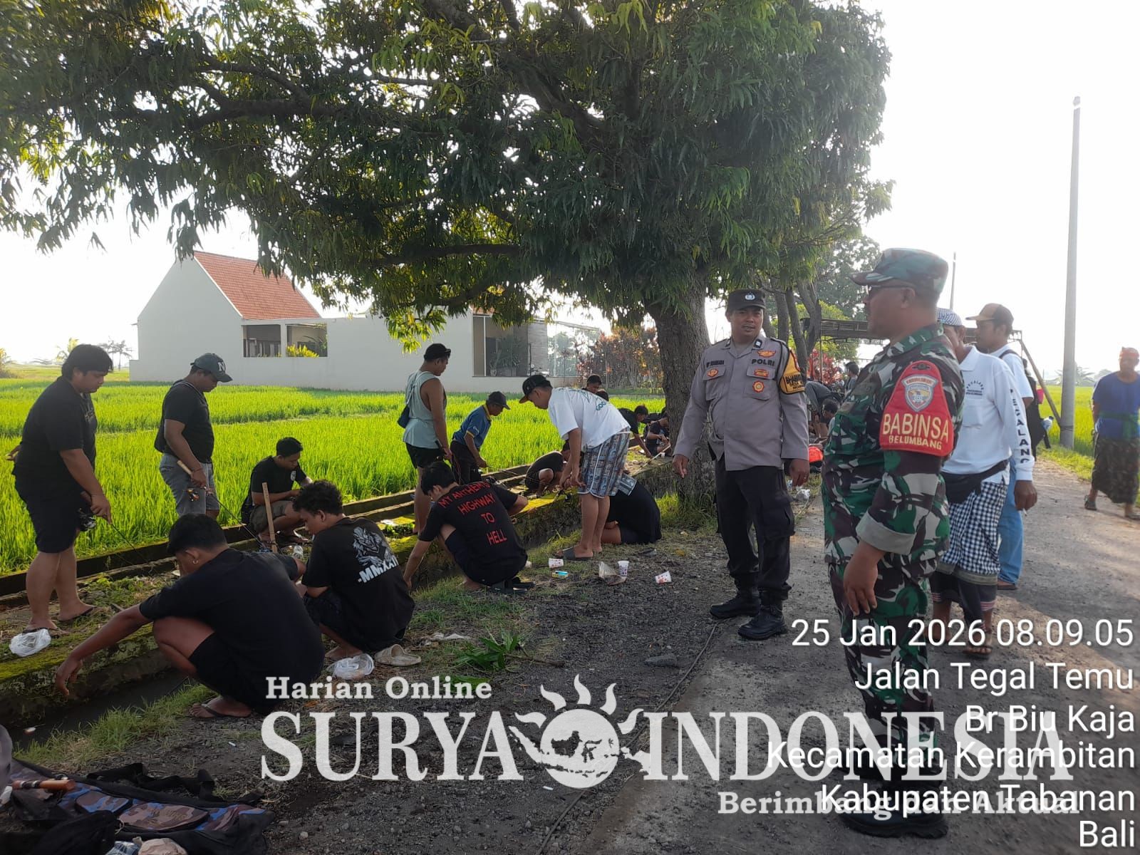 Tabanan, Surya Indonesia.net – Polsek Kerambitan, Minggu 25 Januari 2026; Bhabinkamtibmas Desa Belumbang Aiptu I Wayan Suarsana, S.H. bersama Babinsa dan Pecalang laksanakan pengamanan kegiatan Lomba Mancing bertempat di Saluran Irigasi Subak Belumbang, Banjar Yeh Malet Kelod, Desa Belumbang – Kerambitan.