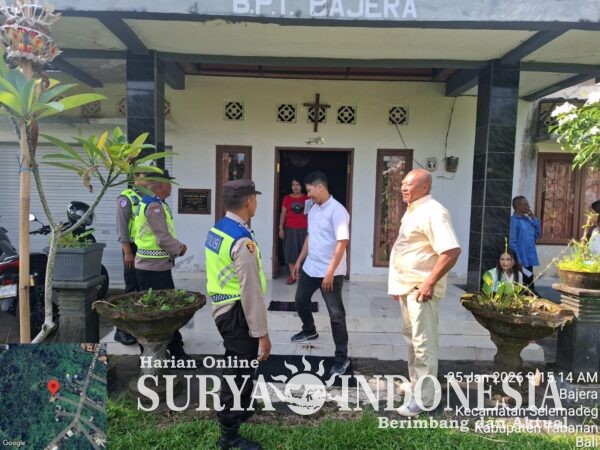 Tabanan , Surya Indonesia.net – Polsek Selemadeg, pada Minggu (25/1/2026) pagi, melaksanakan pengamanan rutin Ibadah Minggu umat Nasrani di dua lokasi, yaitu Rumah Ibadah Tirta Urip dan Balai Pembinaan Iman (BPI) Gloria, di Desa Bajera, Kecamatan Selemadeg. Pengamanan dilakukan mulai pukul 08.30 hingga 09.30 Wita. Pengamanan ini dipimpin langsung oleh Pawas Iptu I Made Adiguna, S.Pd dengan melibatkan 4 personel Polri yang terbagi di kedua titik.