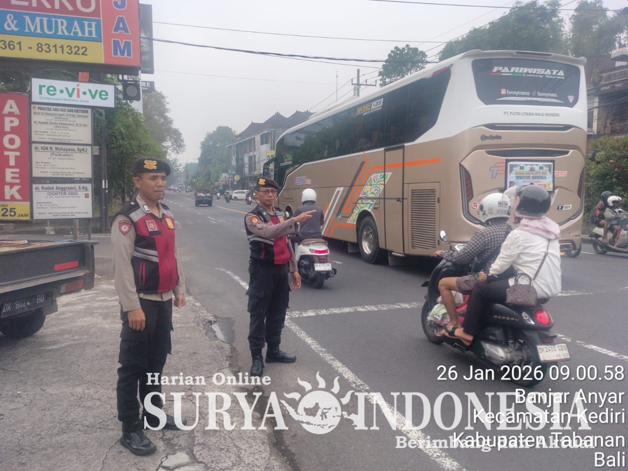 Senin, 26 Januari 2026 pukul 06.30 wita, Penggelaran personil Polsek Kediri secara maksimal yang dipimpin langsung Perwira Pengawas IPTU I Putu Murdita, S.Sos. dengan mengerahkan personil polri baik yang berseragam maupun non uniform dalam melaksanakan penjagaan dan pengaturan arus lalulintas pada simpang yang rawan laka dan macet terutama pada jalur Utama Denpasar Gilimanuk tepatnya di simpang empat Untab jalan A. Yani termasuk dan juga depan sekolah/ penyebrangan anak sekolah serta pemantauan situasi dalam pasar tradisional mengingat pengunjung pasar cukup ramai.