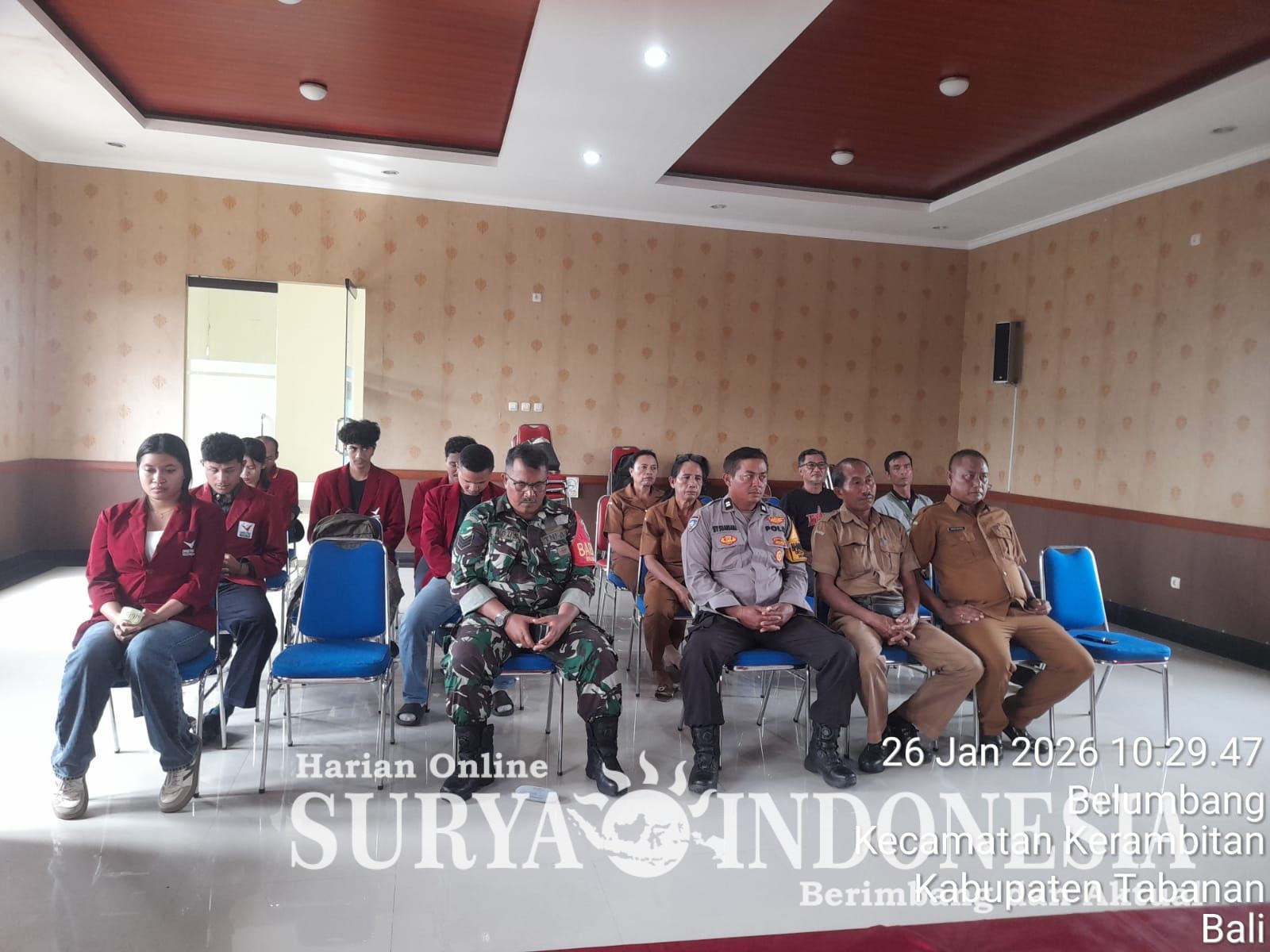 Tabanan, Surya Indonesia.net – Polsek Kerambitan, Senin 26 Januari 2026; Bhabinkamtibmas Desa Belumbang Aiptu I Wayan Suarsana, S.H. bersama Babinsa Belumbang hadiri undangan Penutupan KKN Mahasiswa INSTIKI bertempat di Kantor Desa Belumbang.