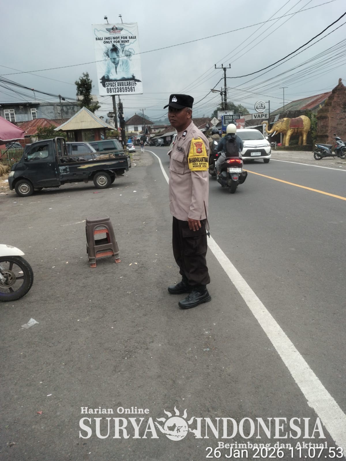 Tabanan , Surya Indonesia.net – Polsek Baturiti melaksanakan kegiatan strong point pada Senin, 26 Januari 2026, bertempat di kawasan Pasar Baturiti. Kegiatan ini dilaksanakan oleh dua personel, yakni AIPTU I Gede Putu Widama dan AIPTU I Wayan Dirgayusa, yang bertugas melakukan pengaturan serta pemantauan arus lalu lintas di sekitar area pasar yang dikenal memiliki aktivitas masyarakat cukup padat pada jam-jam tertentu.