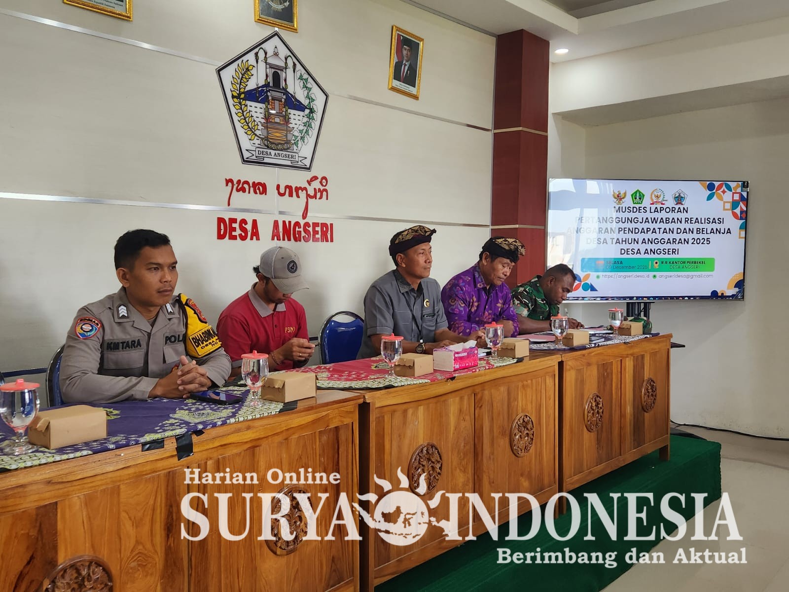 Tabanan, Surya Indonesia.net – Polsek Baturiti melalui Bhabinkamtibmas Desa Angseri Brigpol I Nym Mantara W menghadiri kegiatan Musyawarah Desa pertanggungjawaban APBDes Tahun Anggaran 2025 pada Kamis, 29 Januari 2026 pukul 09.00 Wita hingga selesai di Aula Kantor Desa Angseri, Kecamatan Baturiti, Kabupaten Tabanan. Kegiatan ini menjadi forum penting dalam penyampaian laporan kinerja serta penggunaan anggaran desa kepada masyarakat.
