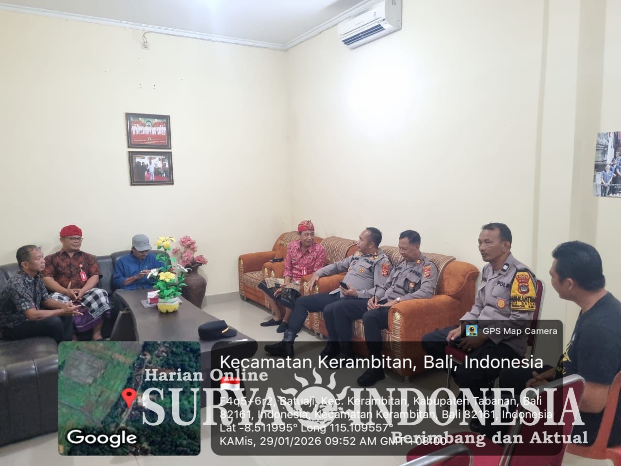 Tabanan, Surya Indonesia.net – Polsek Kerambitan, Kamis 29 Januari 2026; Kapolsek Kerambitan KOMPOL I KADEK ARDIKA, S.Sos., M.H. laksanakan Safari Kamtibmas dengan Perbekel Desa Batuaji bertempat di Kantor Desa Batuaji.