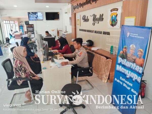 Blitar/suryaindonesia.net – Satlantas Polres Blitar Kota laksanakan program unggulan “Polantas Menyapa” di kantor SAMSAT setempat. Program andalan ini memangkas jarak antara Polri dan warga dengan menghadirkan layanan publik yang dekat, cepat, ramah, dan humanis, Kamis (29/1/2026).